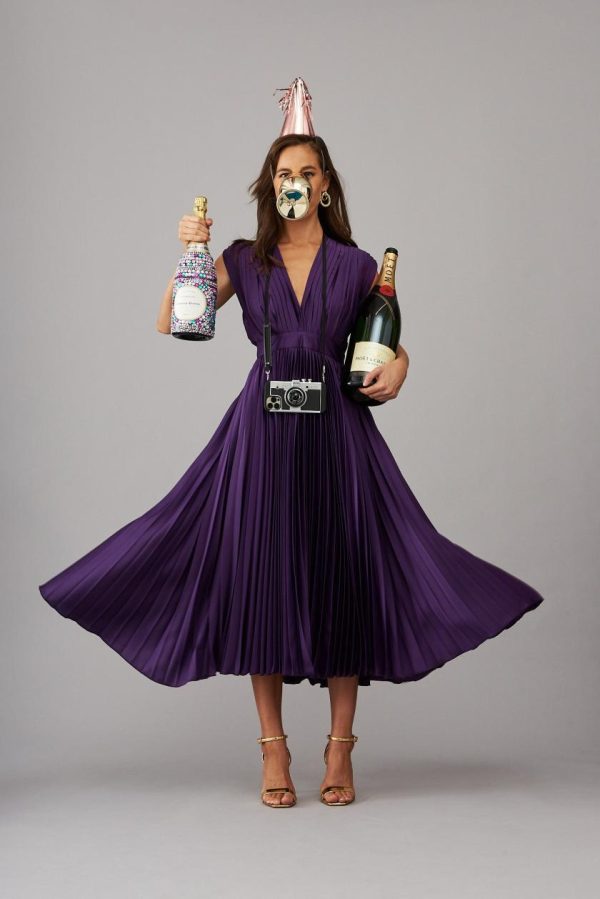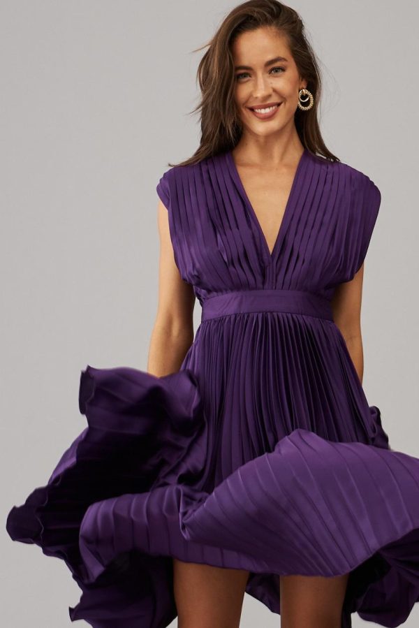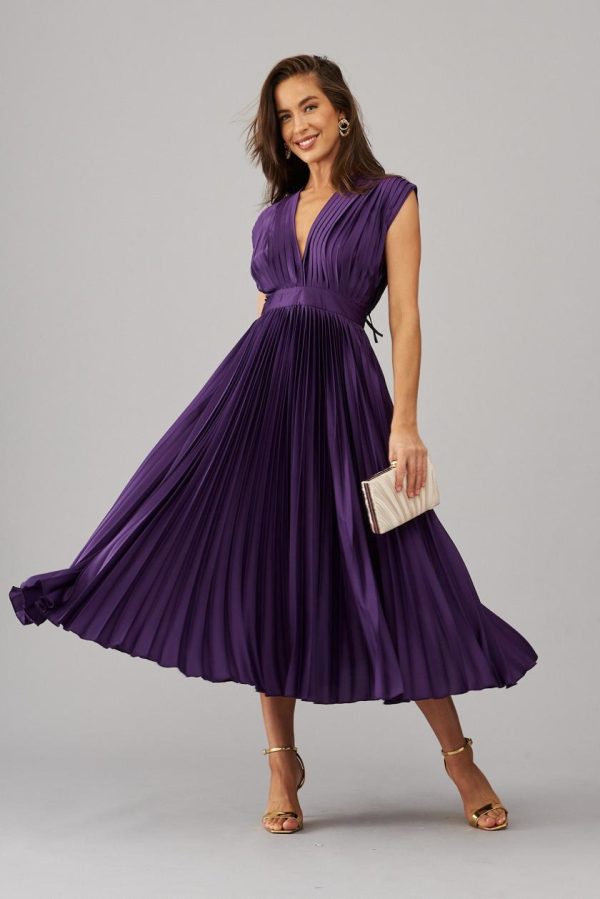 Feel extra special in our Anetta Midi Dress! This sweet style features a gorgeous V neckline, cinched waist, and all over pleated fabric which will fit and flatter you in all the right places! Embrace the upcoming party season and style yours with sparkly drop earrings and sleek stilettos.
