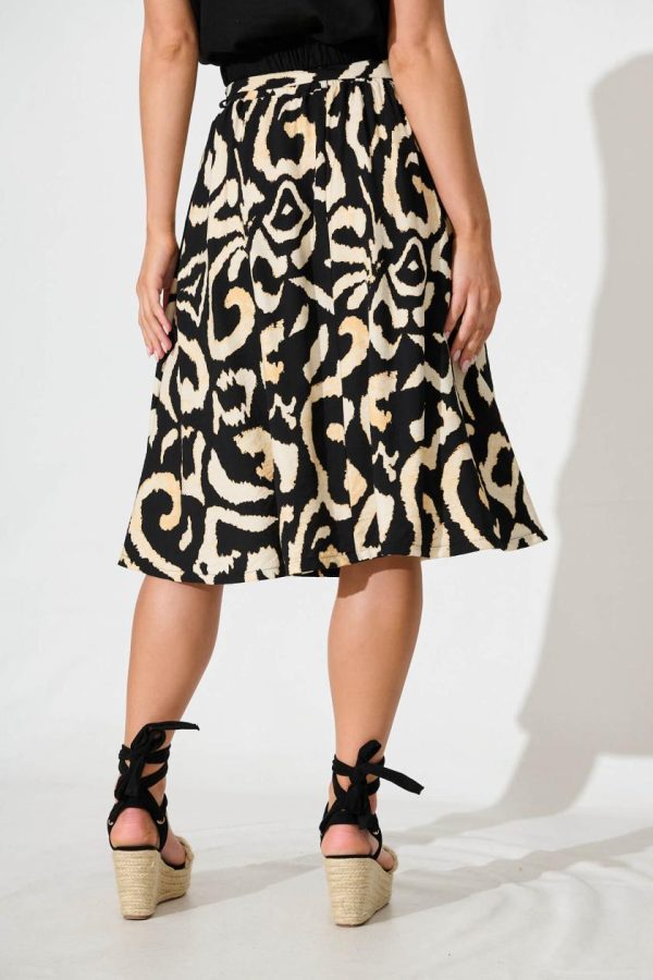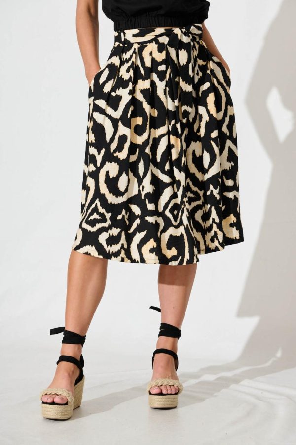 Women Bailey Midi Skirt In Black With Cream Abstract | St Frock Skirts & Shorts