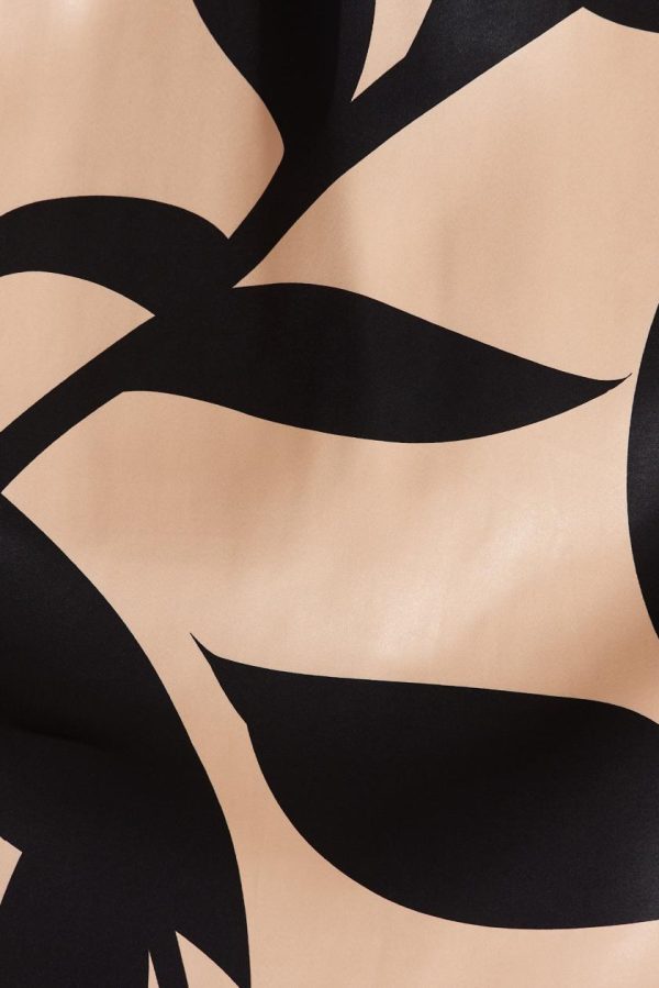Women Bernadette One Shoulder Midi Dress In Brown With Black Print Satin | St Frock Formal