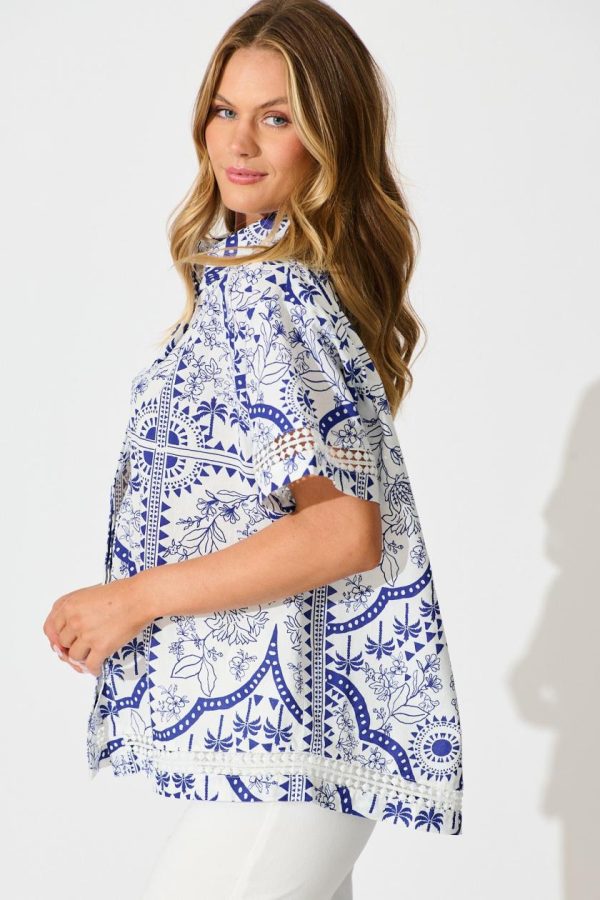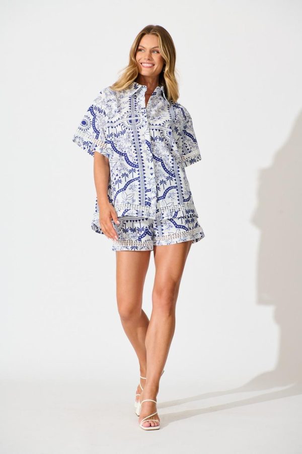 Made from a linen cotton blend, our Capri Shirt will keep your breezy and fresh over the warmer months. Featuring a lace detail along the sleeve and hemline. Team with the coordinating Alina shorts for an effortless look.