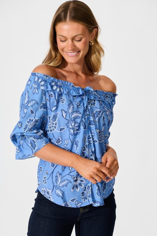 Women Hidden Treasure Top In Blue Floral | St Frock Casual