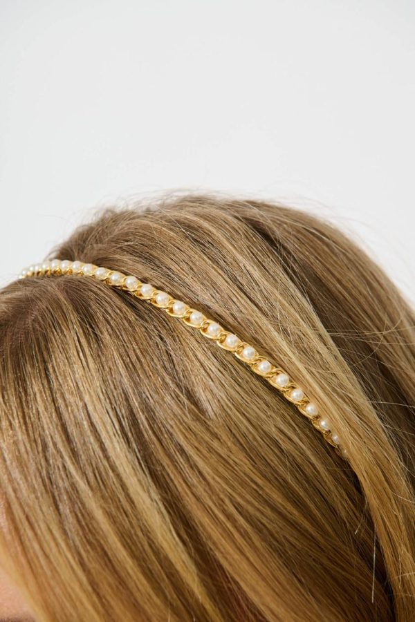 Women Jay Chain Headband In Gold With Pearl | St Frock Hair Accessories
