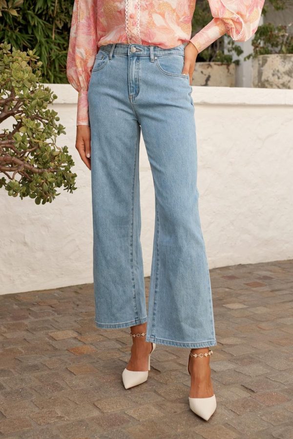 Women Jency Mid Rise Wide Leg Jean In Light Blue Denim | St Frock Denim