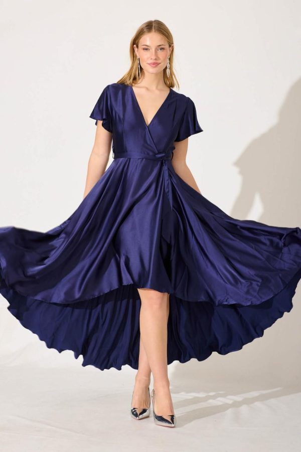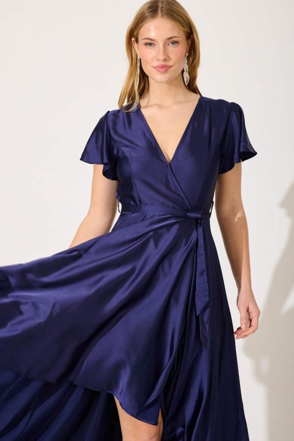 Women Loulou Maxi Dress In Navy Satin | St Frock Formal