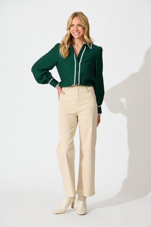 Women Lynelle Shirt In Emerald With White Contrast | St Frock Party & Occasion