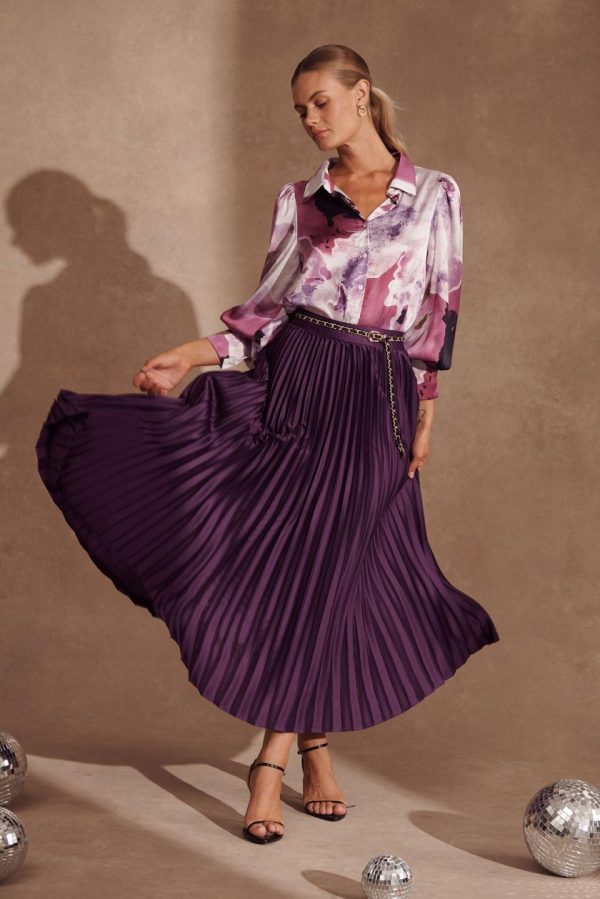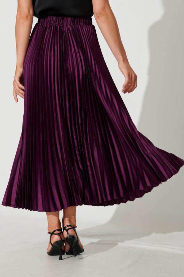 Women PRE ORDER Allison Midi Pleat Skirt In Plum Satin | St Frock Skirts & Shorts