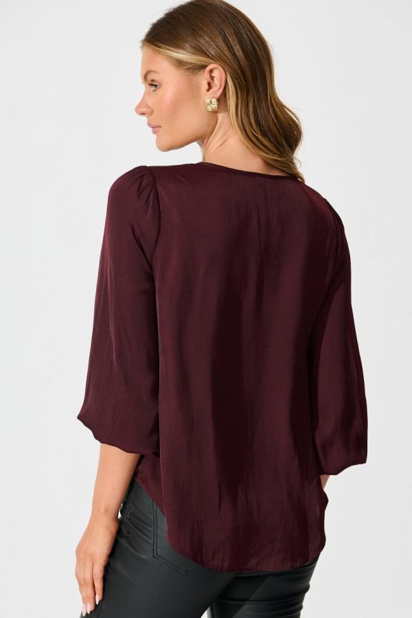 Women Pristine Top In Wine Satin | St Frock Workwear