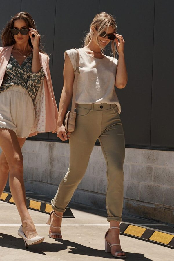 Women Rejina Top In Oatmeal Linen Blend | St Frock Workwear