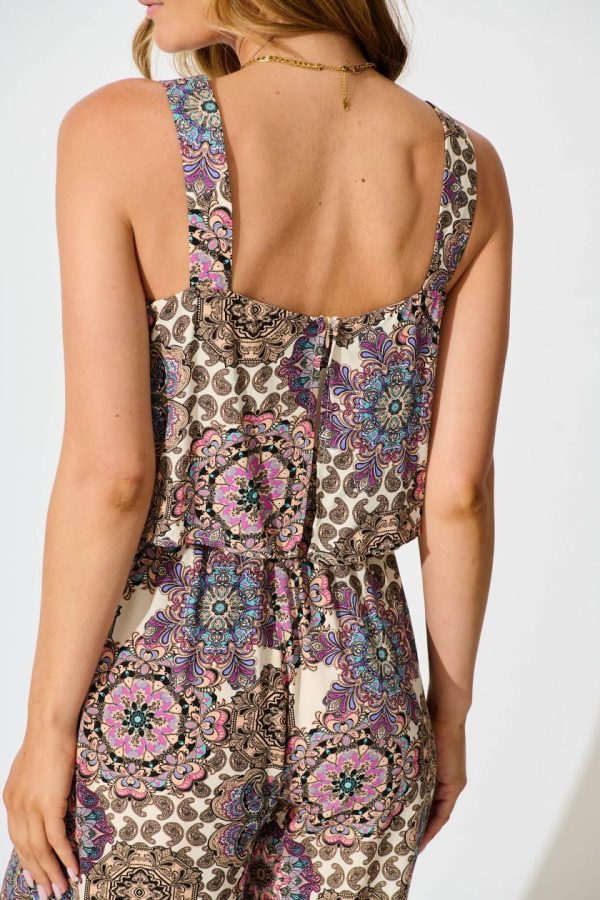 Women Sandcastle Jumpsuit In Cream With Purple Paisley | St Frock Playsuits & Jumpsuits