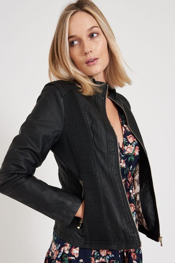 Our Stefany Biker Jacket is a beautiful statement piece! Rendered on a faux leather fabrication with deluxe detailing, creating a rock goddess look we know you’ll love. Lined with a snake skin print fabric, this piece feels comfortable & will elevate every look!