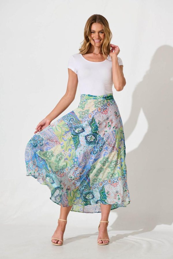 Women Talisse Maxi Skirt In Blue Multi Patchwork | St Frock Skirts & Shorts