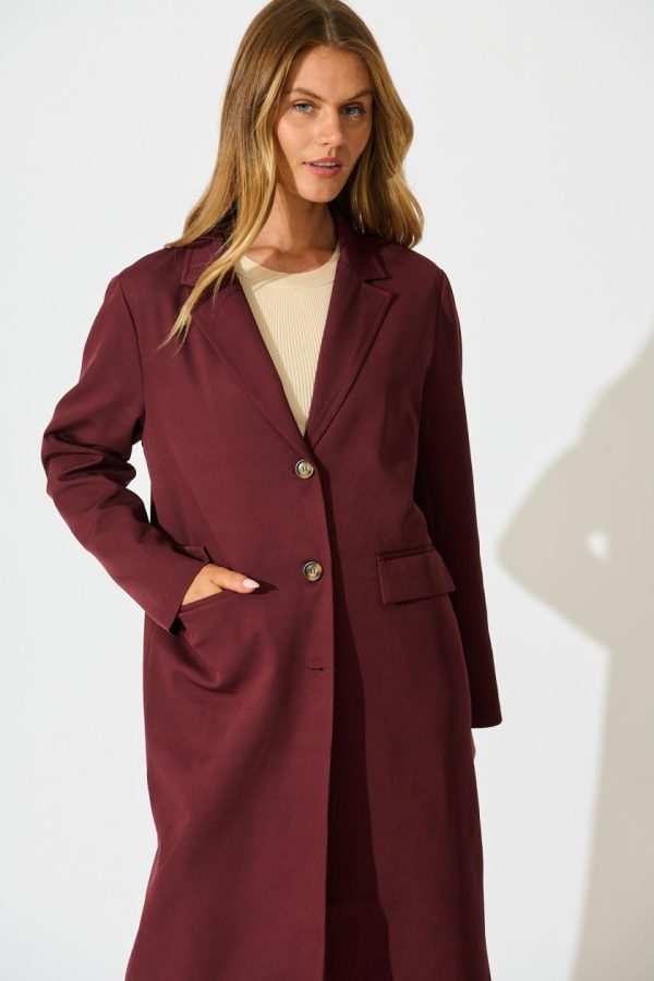 Women The Heritage Coat In Wine | St Frock Outerwear