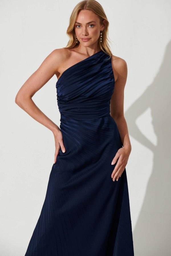 Women Toulon One Shoulder Maxi Dress In Navy | St Frock Formal