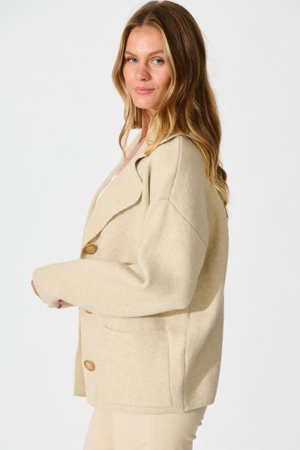 Women Varney Knit Cardigan In Beige Wool Blend | St Frock Knitwear