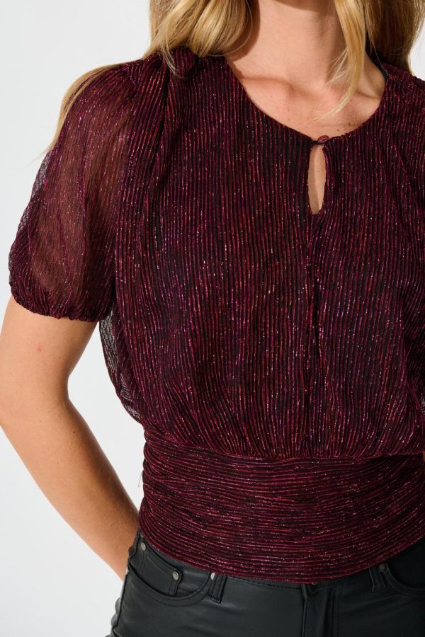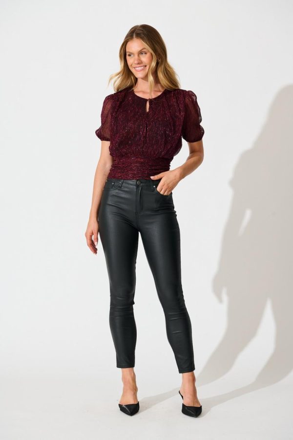 Level up your wardrobe with our Whisked Away Top! The ruched waistline and shirred back make it perfect to top to jazz up your favourite dark denim, while the lurex thread adds a little extra sparkle! Finish your look with a pair of pumps and a bold red lip!